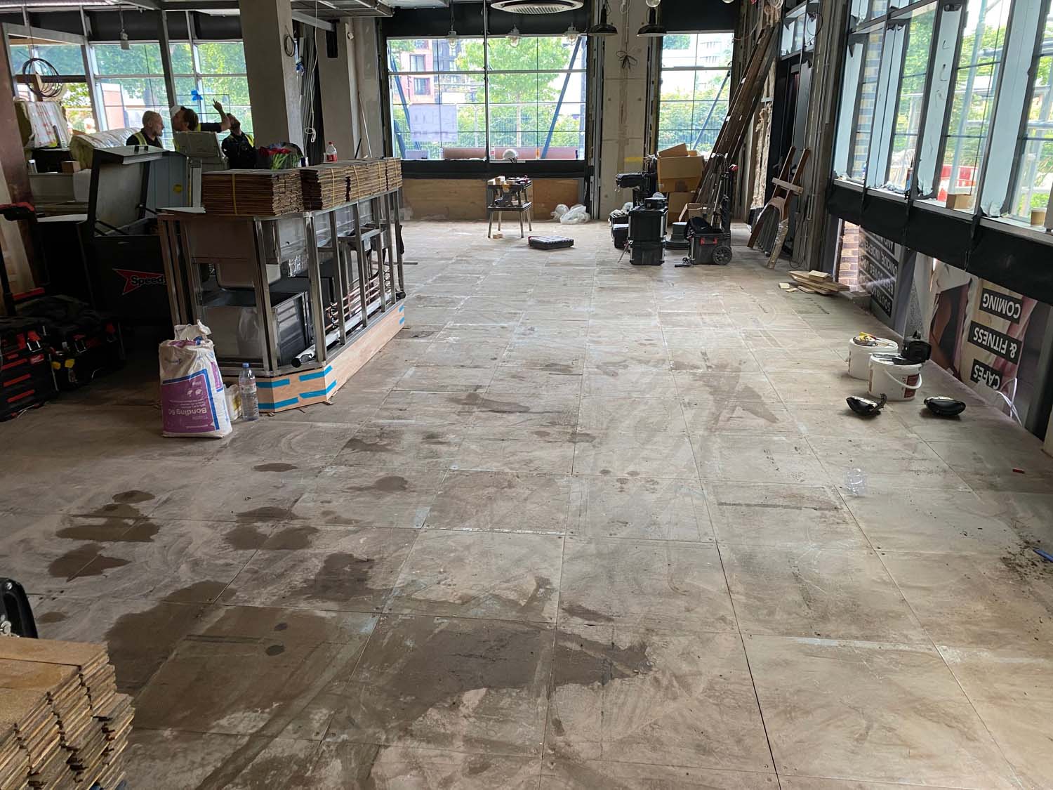 Install reclaimed timber flooring in both the areas using a herringbone pattern and ladder pattern in the pub/restaurant. Then machine sanded and sealed with hardwearing high traffic 2-part lacquer.